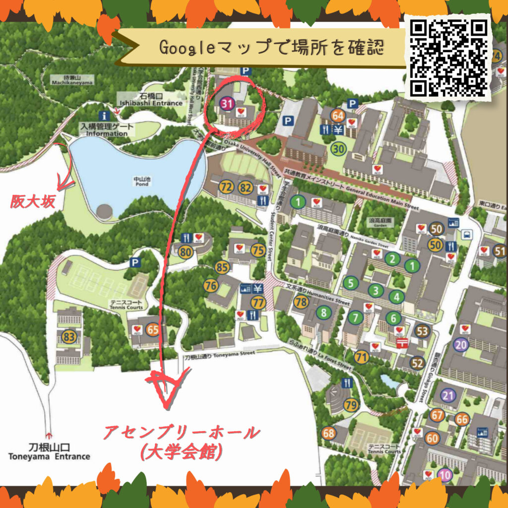集合場所:豊中キャンパス学内連絡バス バス停前(総合図書館)