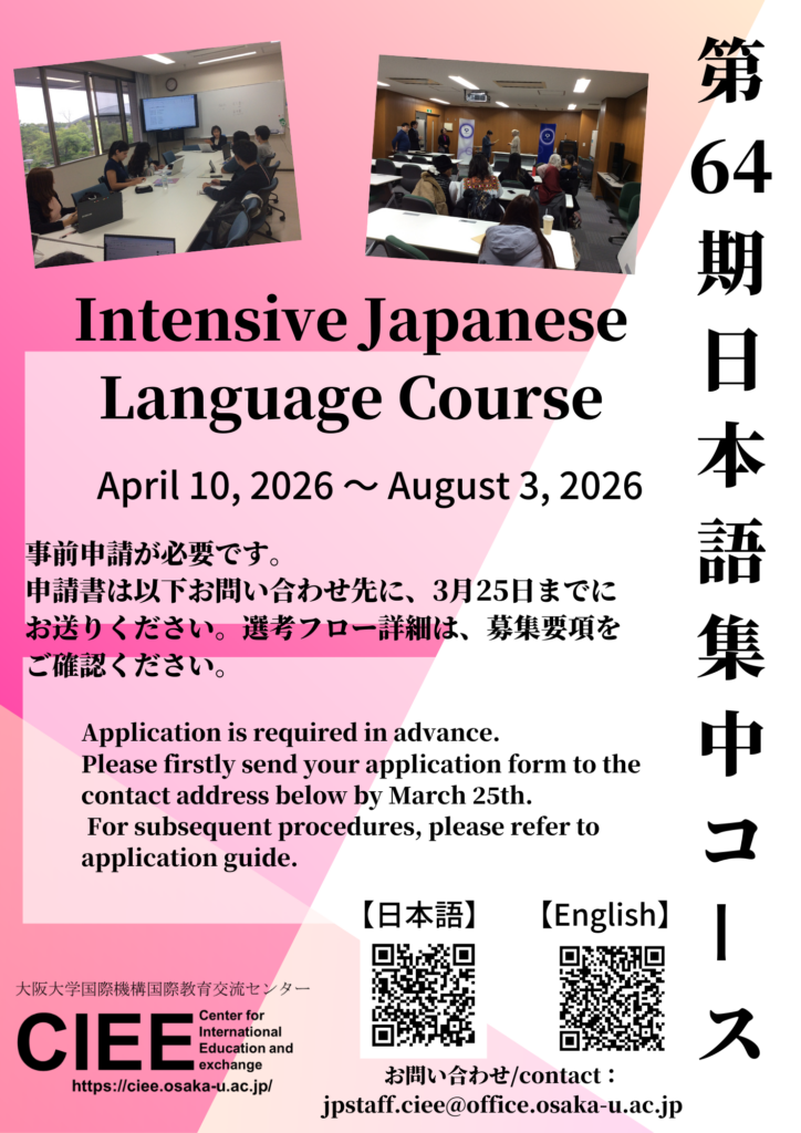 第64期日本語集中コース(Intensive Japanese Course)学内募集について