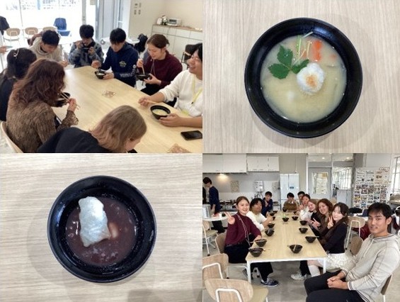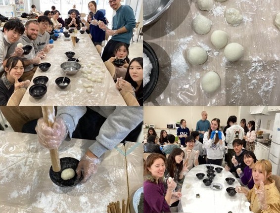 留学生11名、日本人等一般学生5名の計16名が参加しました。参加者たちは、みたらし味・きな粉味・あんこ味の3種類の団子を一緒に作り、月を眺めながらおいしく味わいました。