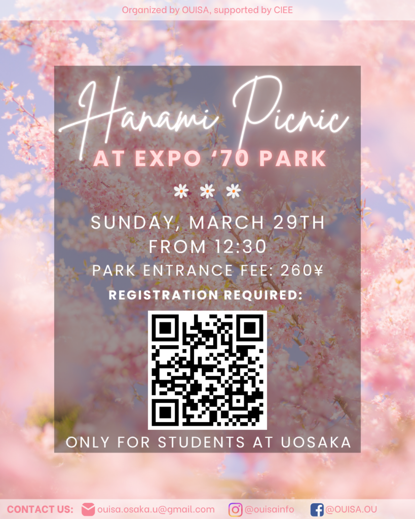 大阪大学の留学生、研究員、教員、そのご家族、歓迎です。