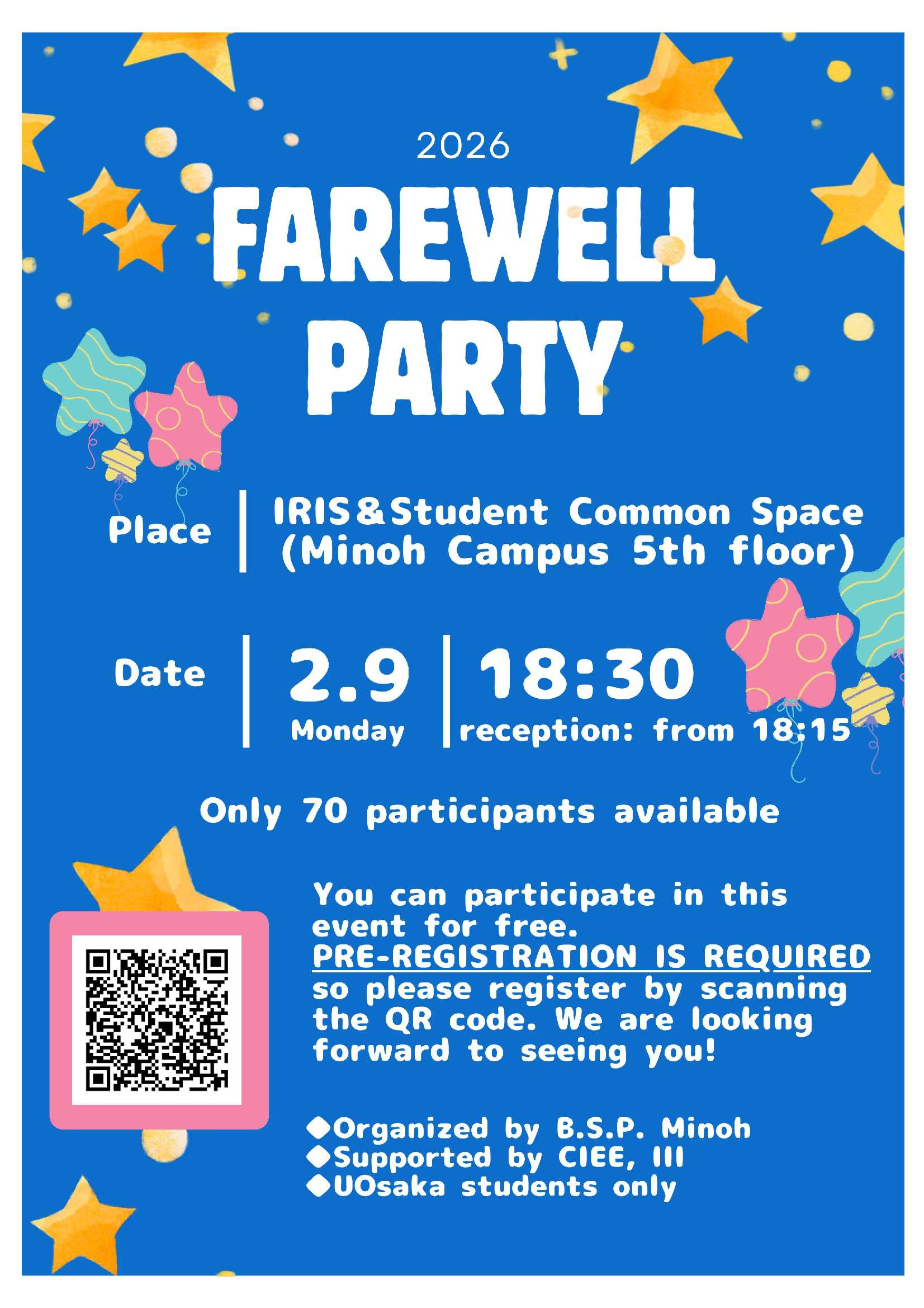 Target: international student, researcher, faculty and staff at the University of Osaka