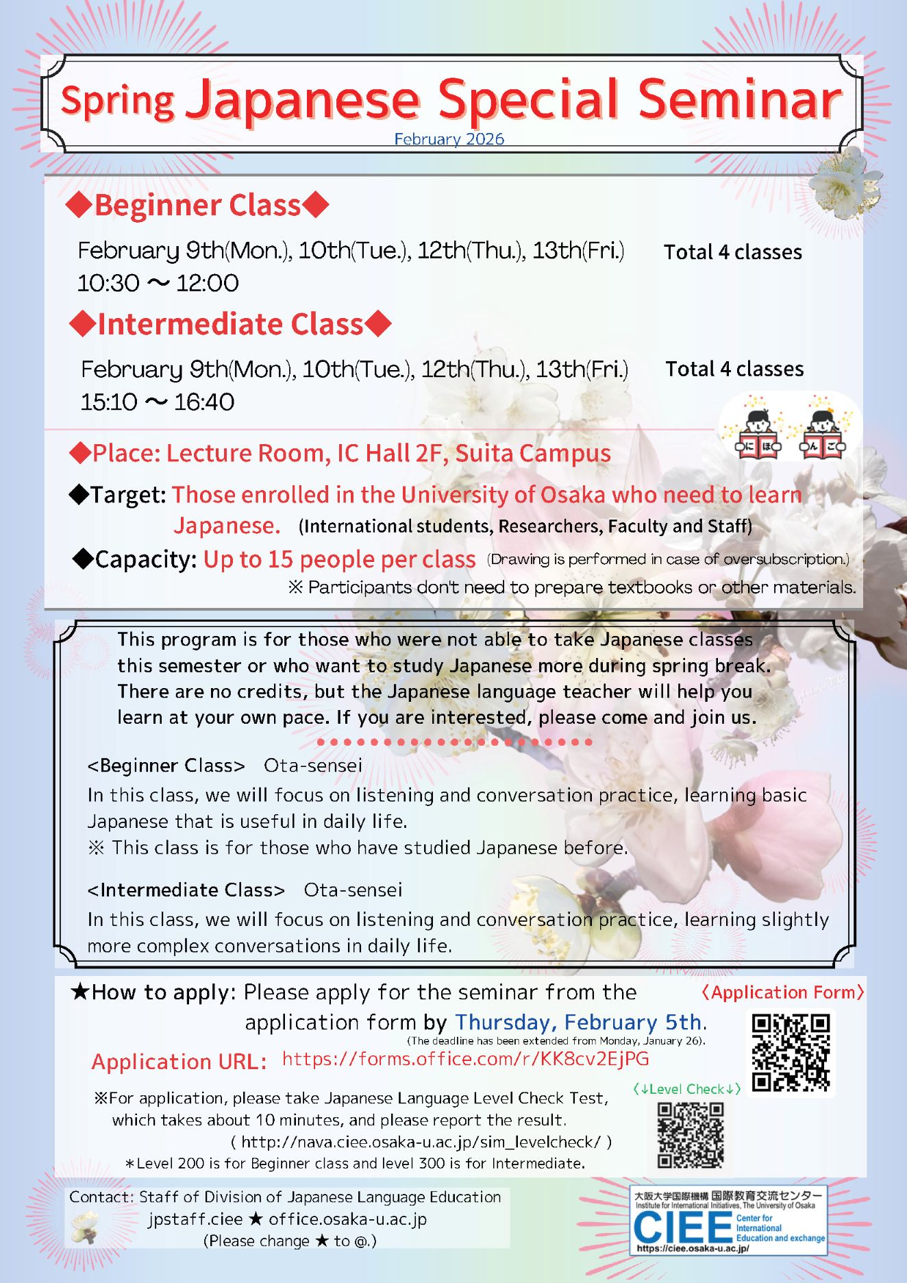 Spring Japanese Special Seminar (February 9th ~ February 13th, 2026)