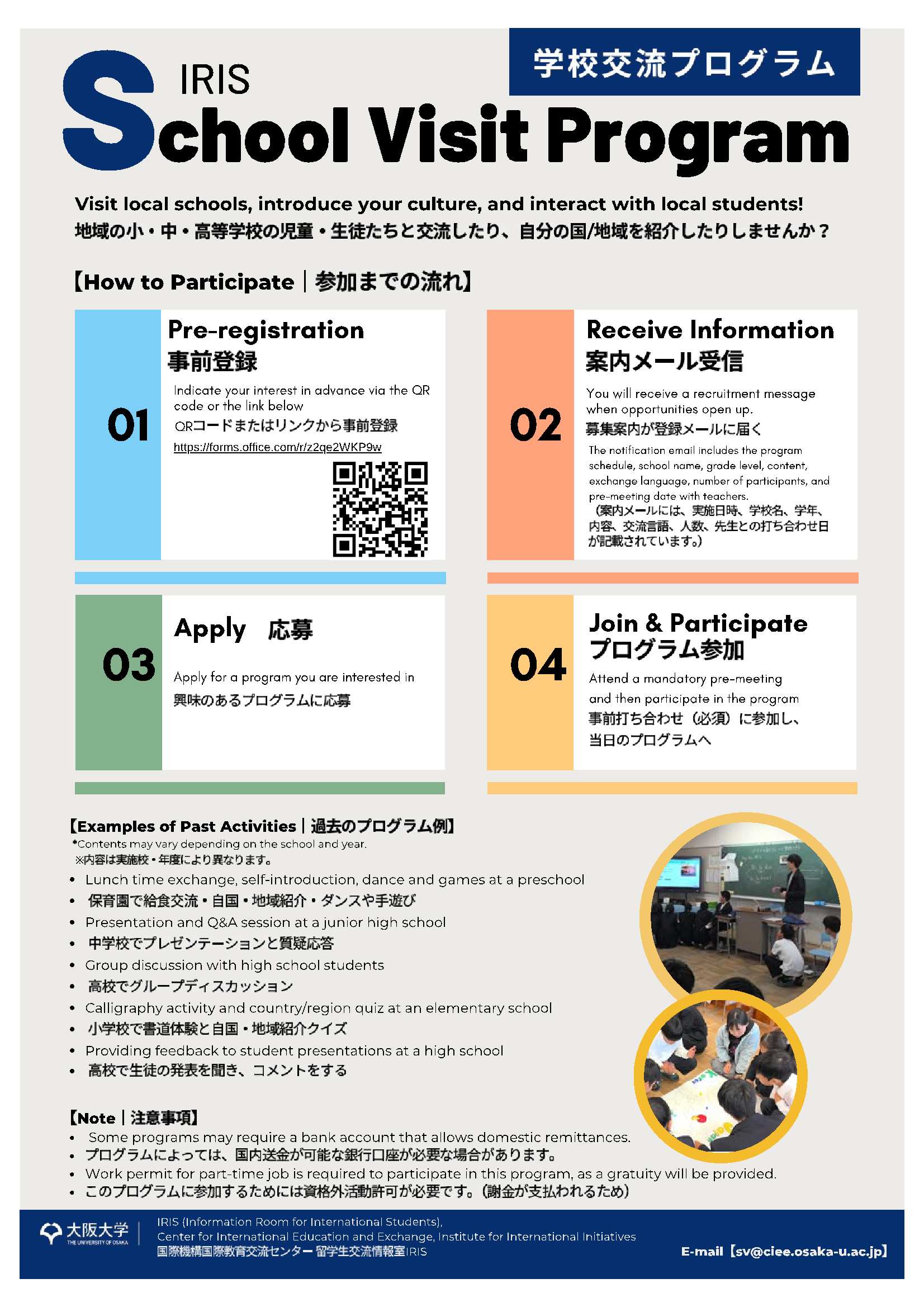 - Dispatching international students to requests from local elementary, junior high and high schools