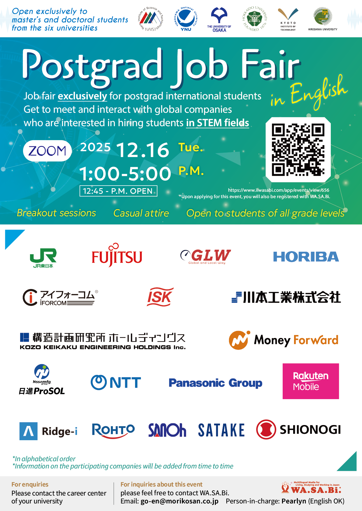 Special event: English Job Fair for UOsaka International Graduate Students (Online)